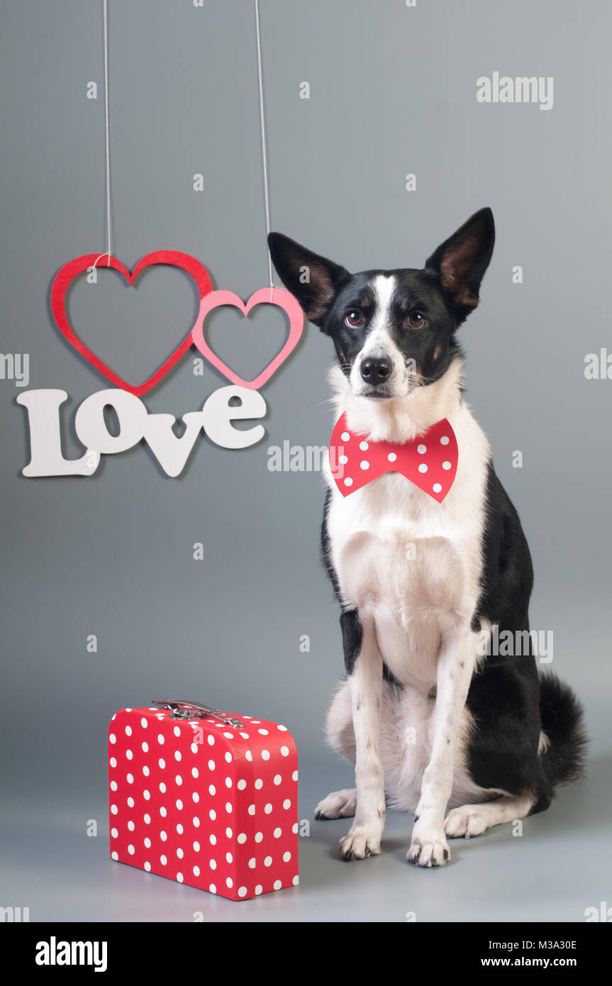 Funny Mixed Breed Dog Valentine Portrait Stock Photo C Grase